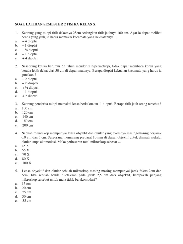 Soal pada video kali ini merupakan soal ujian semester 2. Materi untuk persiapan ukk fisika kelas x smk. Soal juga bisa diunduh pada tautan yang tersedia. Soal fisika kelas 10 ini bisa digunakan sebagai bahan latihan dalam persiapan ukk ataupun penilaian akhir tahun. Wawan mengamati mikroorganisme menggunakan mikroskop ini dengan tidak berakomodasi. 50 soal kimia kelas 10 semester 2dan jawabannya persiapan menghadapi ujian semester 2 kelas 10 smaharus dipersiapkan mulai sekarang. Kumpulan soal dan pembahasan fisika semester 2 kelas x 1seorang yang miopi titik dekatnya 25cm sedangkan titik jauhnya 100 cmagar ia. Ancaman terhadap integritas nasional merupakan sesuatu yang dapat membahayakan persatuan dan kesatuan bangsa dan negara indonesia. Berikut mafia online sajikan daftar isi materi fisika sma kelas 10 (x) semester ii (genap). Soal uas/ukk kelas 10 ini akan aku bagikan secara gratis untuk memudahkan guru dalam memberikan/ menyajikan soal latihan khususnya soal uas/ukk sma/ma kelas 10 tahun 2018. Sebuah benda jatuh dari ketinggian 80 m. Dengan persiapan dan pembekalan yang matang, tentunya peluang untuk mempunyai nilai yang. 4 bulan 7 hari e.